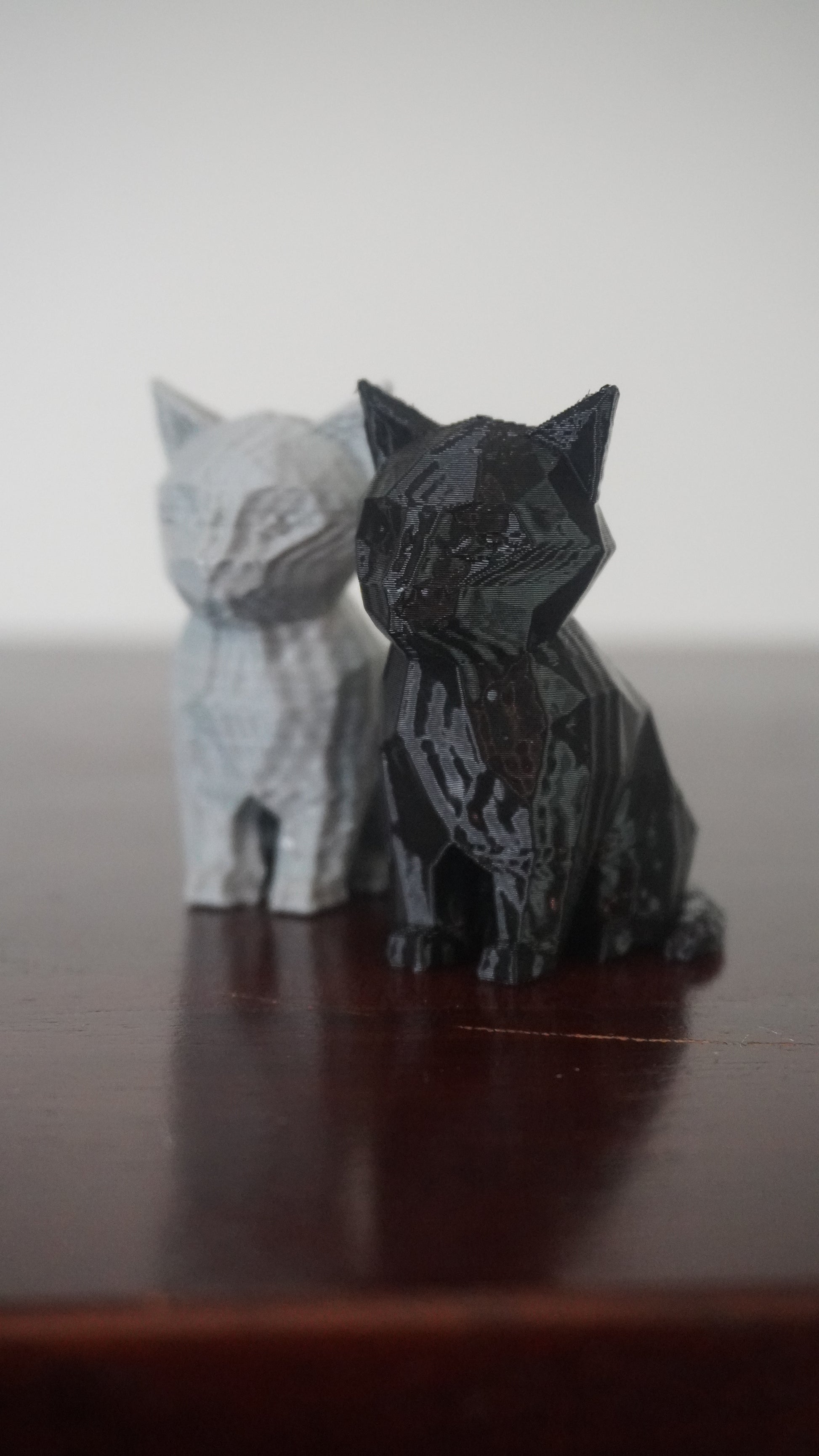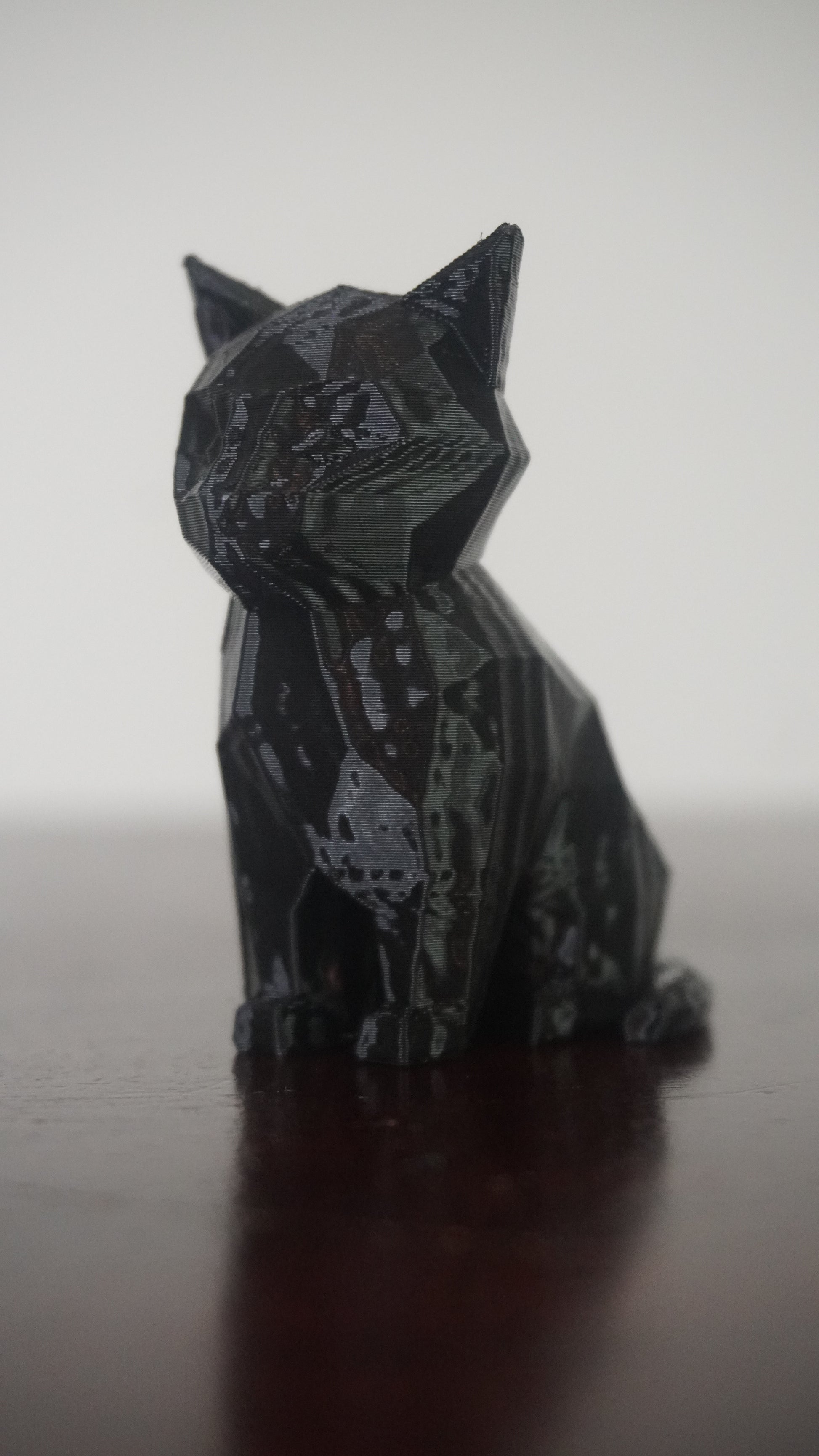 A 3d printed cat designed with a low number of polygons.